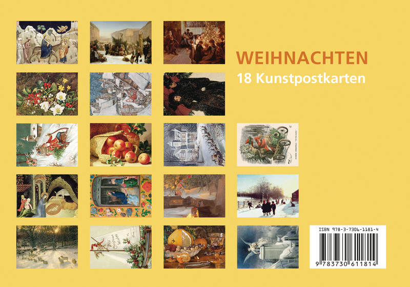 »Es weihnachtet sehr« dieser Satz aus der Feder Theodor Storms bringt das Lebensgefühl großer Teile der Welt zum Ausdruck, wenn am Ende jeden Jahres das Fest der Feste naht. Die vielfältigen Kunstwerke in diesem Postkarten-Set geben diese heimelige Stimmung wieder. 18 besondere Weihnachtskarten zum Verschicken und Verschenken.