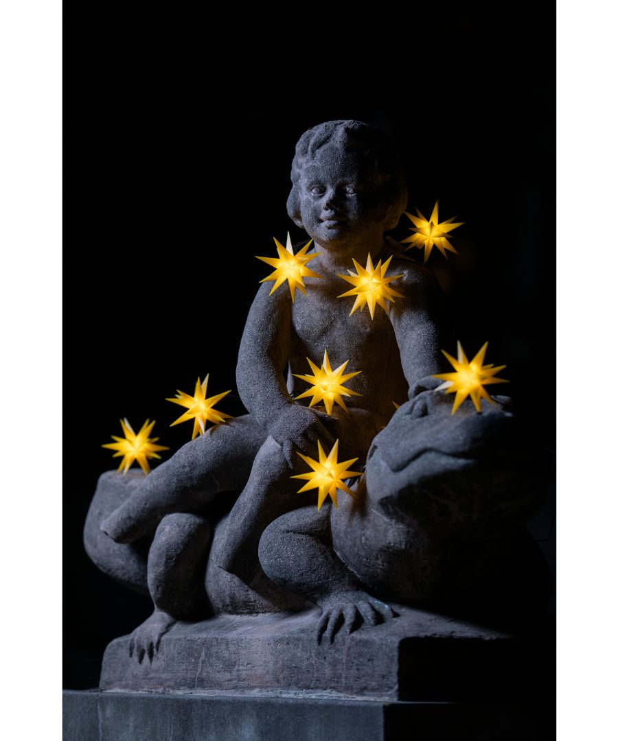 Diese Mini-Sternenkette besteht aus drei kunstvollen Sternen, jeder mit beeindruckenden 18 Zacken und einem Durchmesser von jeweils 12 cm. Sie wurde speziell für den Innenbereich entwickelt und sorgt mit ihrer warmen LED-Leuchte für eine gemütliche Atmosphäre.