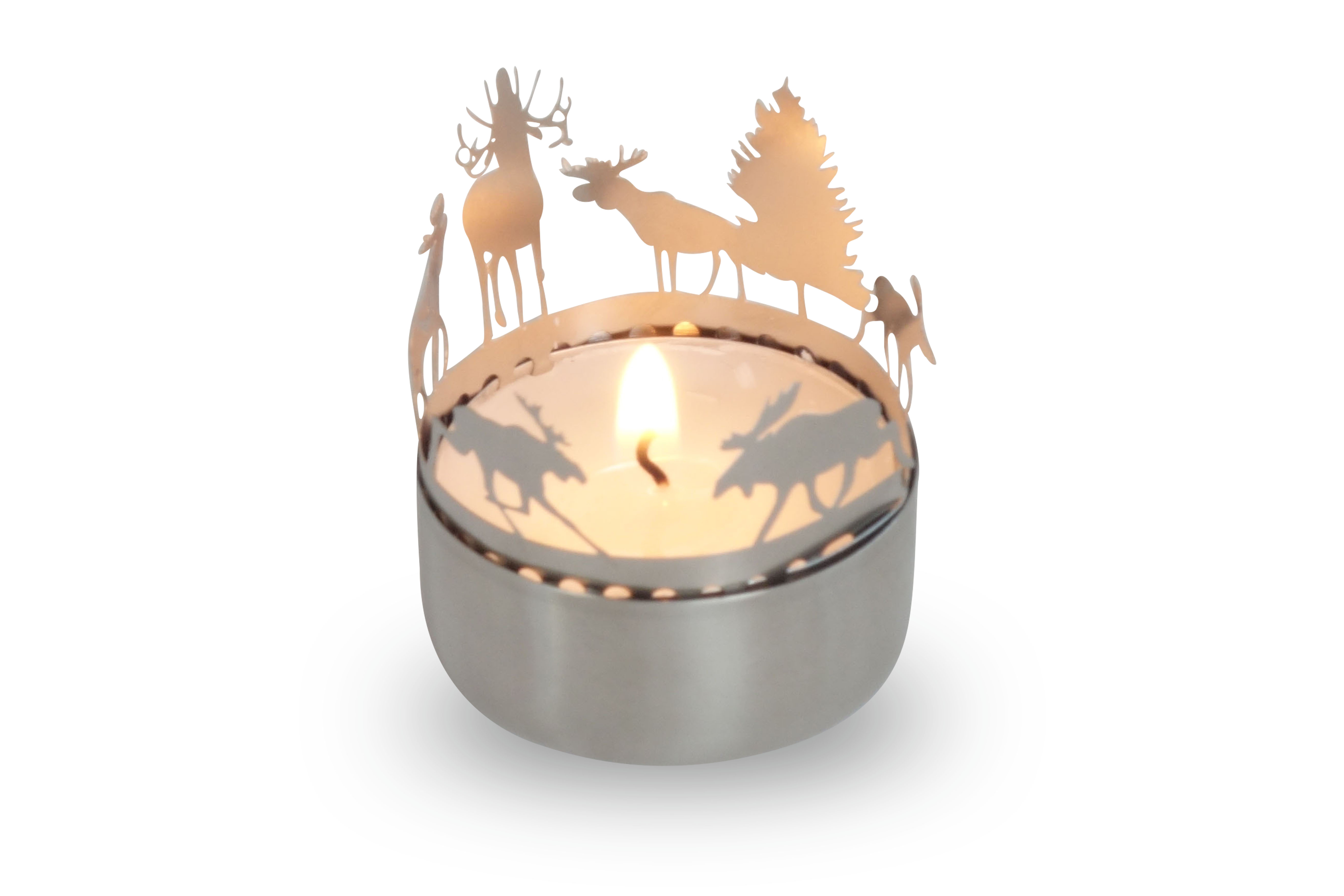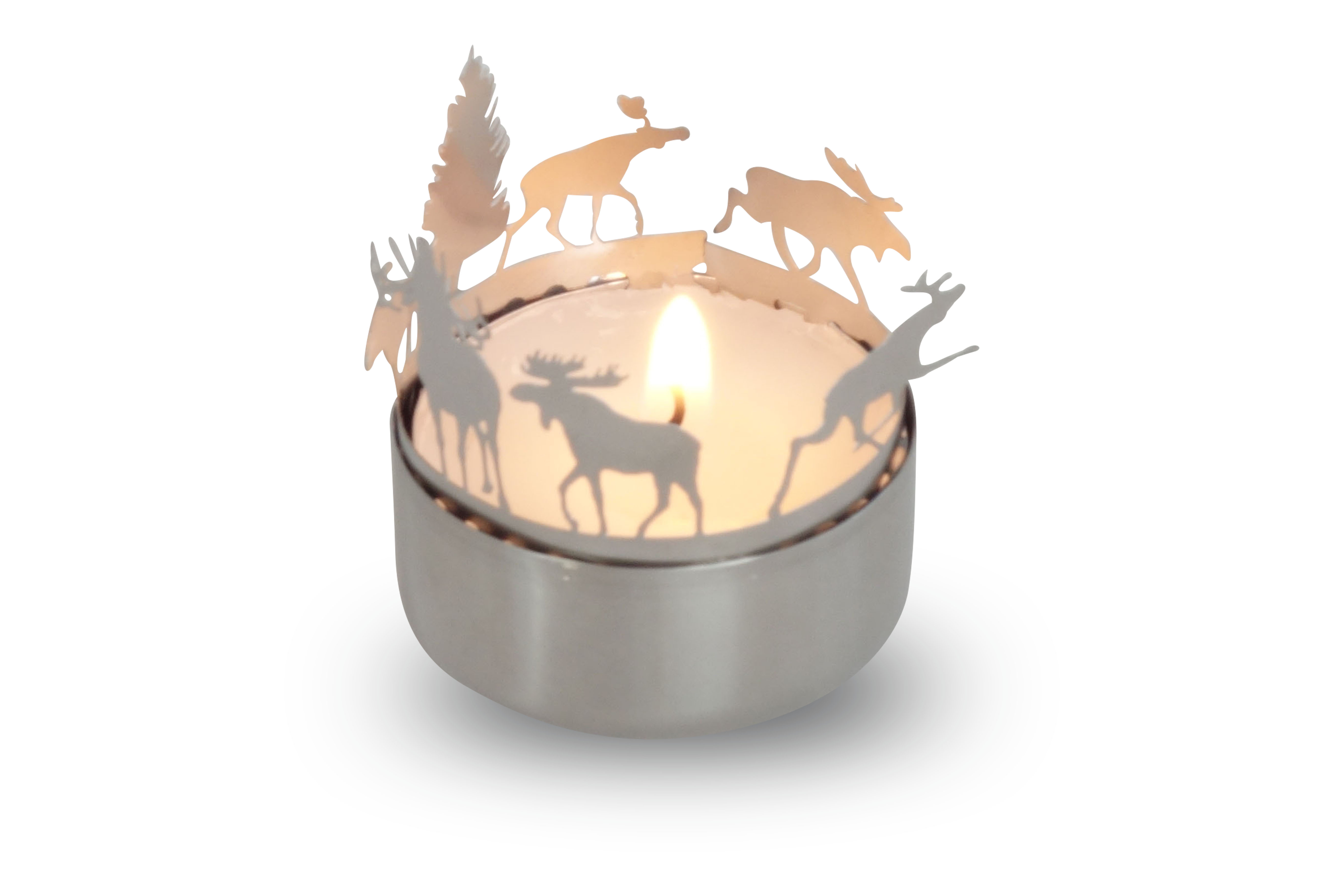 Ideal zum Verschenken oder Selbstbehalten, machen Sie jemanden eine Freude und bringen Sie jemanden zum Leuchten! Entdecken Sie Elche im Kerzenschein.