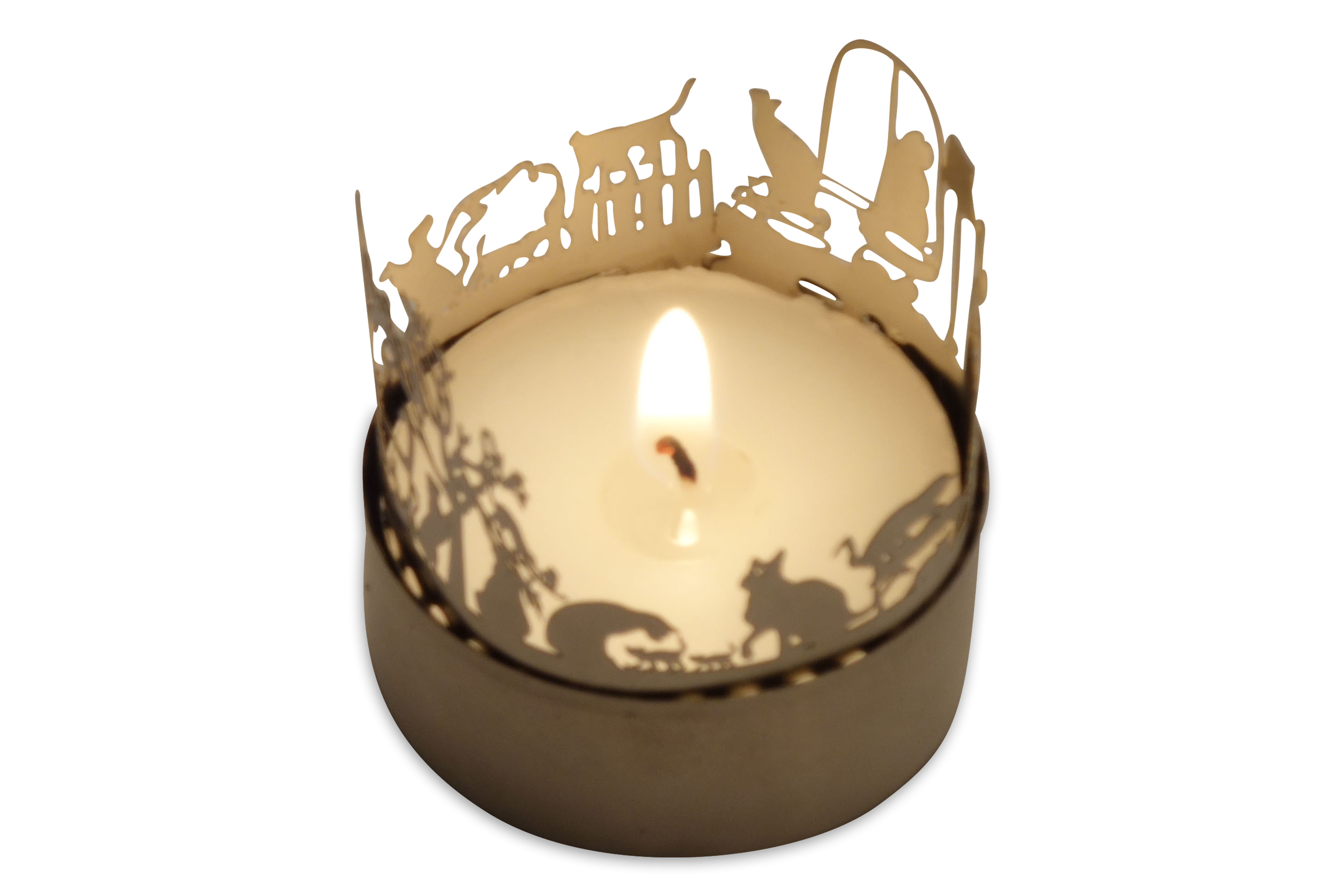 Lassen Sie sich verzaubern von diesem einzigartigen Katzen T-Light Schauspiel. Das Katzen Windlicht-Schattenspiel zeigt Ihnen die schönsten Motive rund ums Thema Katzen auf eine Weise, in der Sie Katzen bestimmt noch nie betrachtet haben. Durch das Flackern der Kerze erwacht die Silhouette zum Leben, mit viel Liebe zum Detail haben wir dieses Motiv für Sie en miniature präsentiert. Ideal zum Verschenken oder Selbstbehalten, machen Sie jemanden eine Freude und bringen Sie jemanden zum Leuchten! Entdecken Sie Katzen im Kerzenschein.