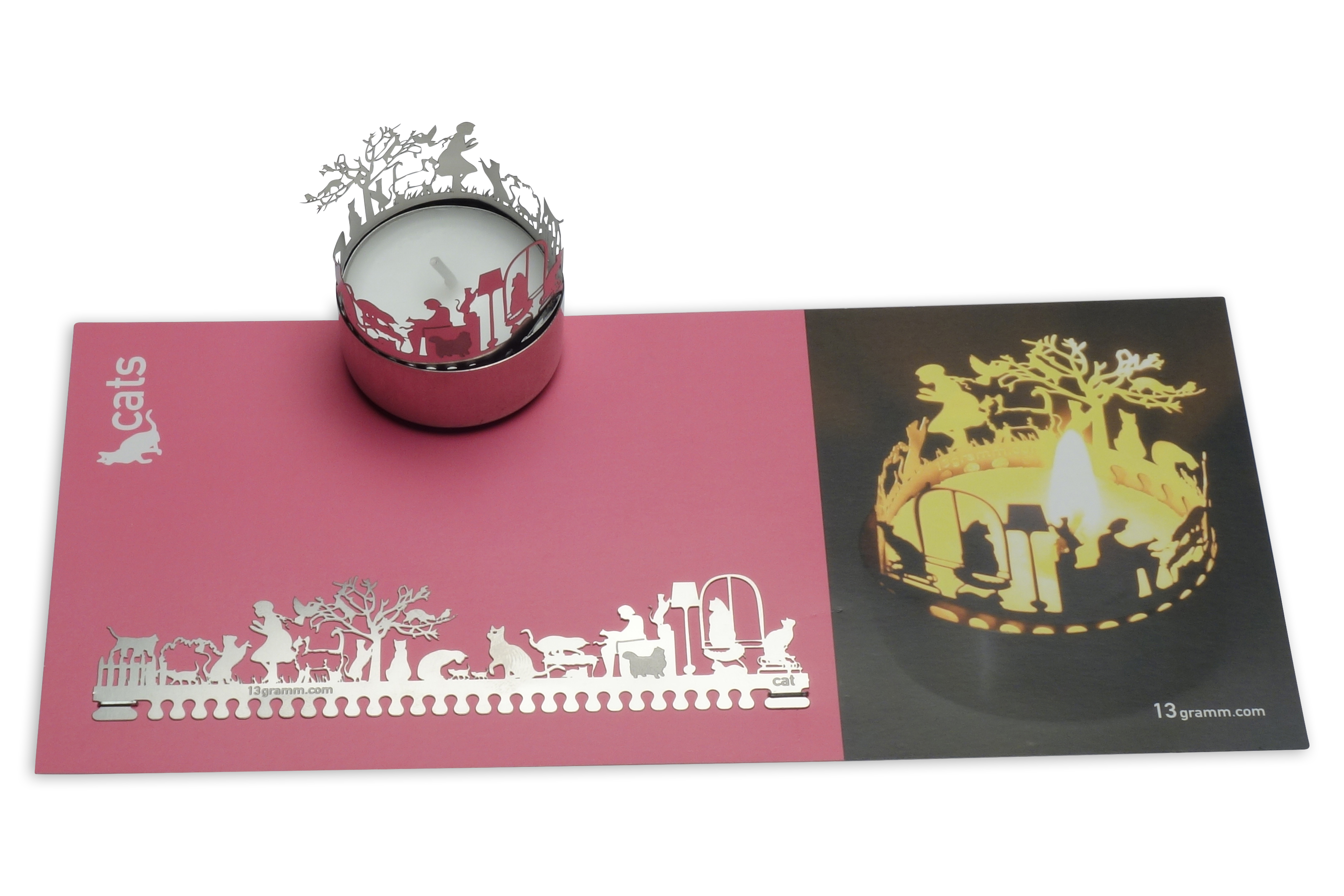 Edelstahl-Silhouette versandfertig auf Postkarte passend für handelsübliche Teelichter