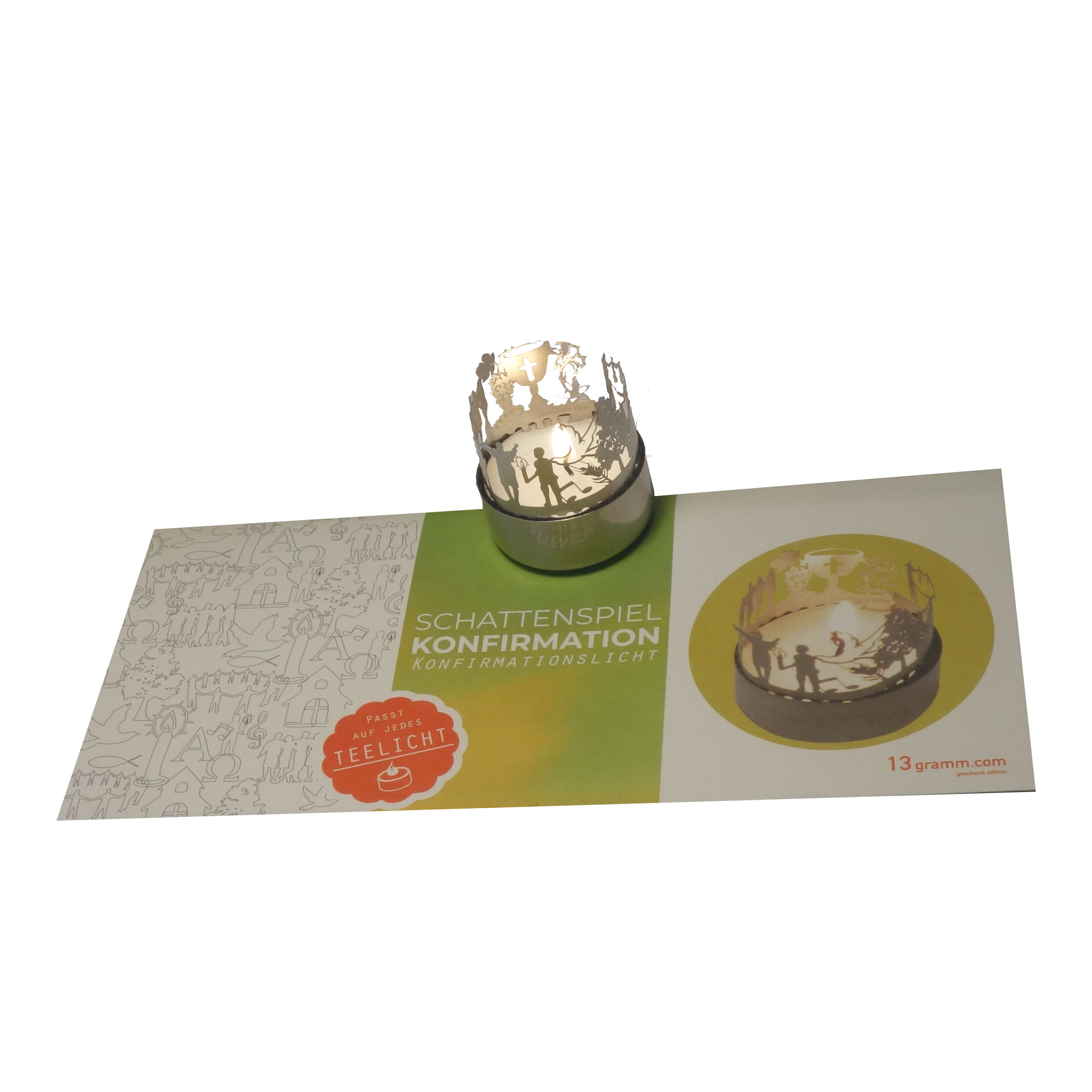 Konfirmation-Windlicht Schattenspiel mit Grußkarte