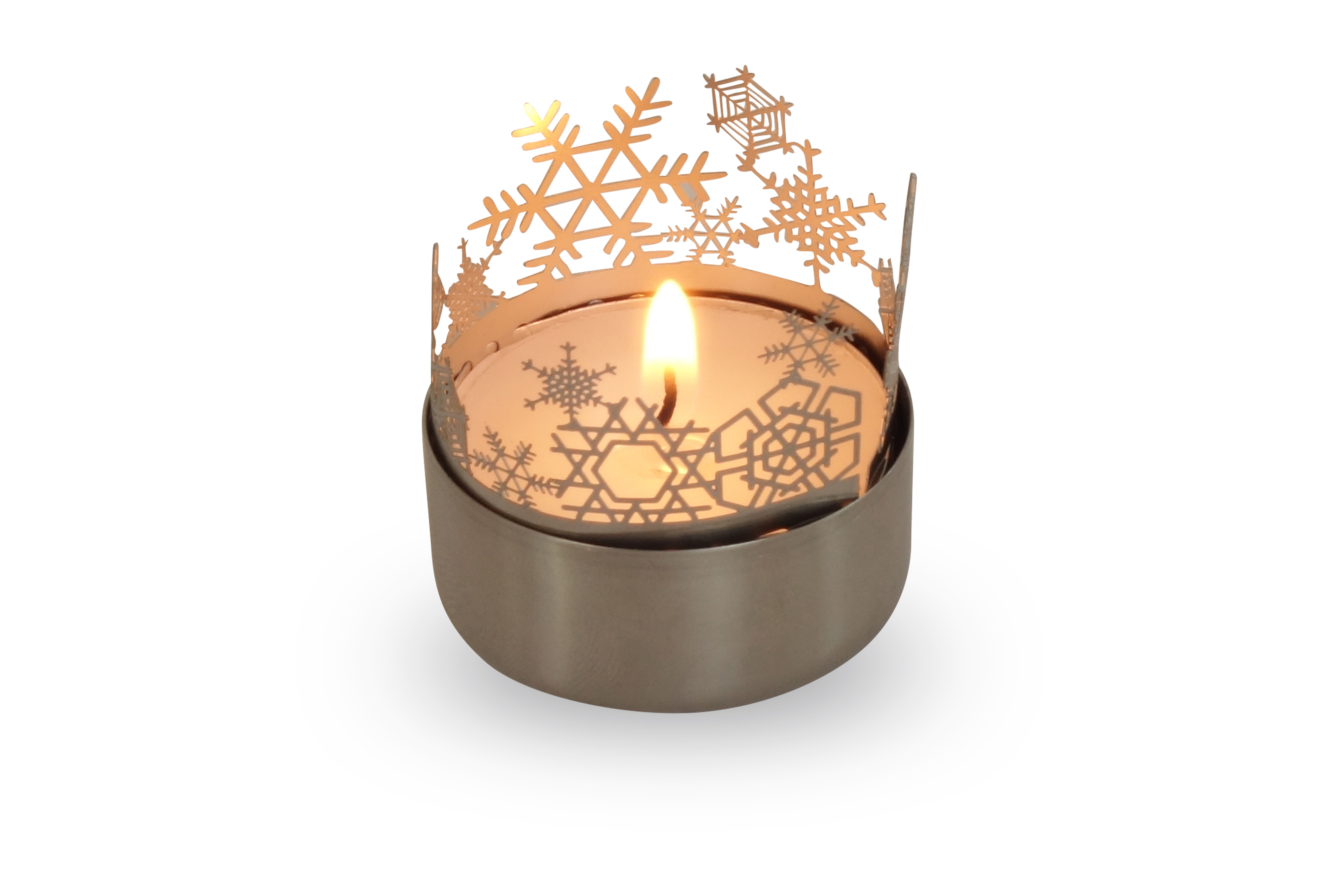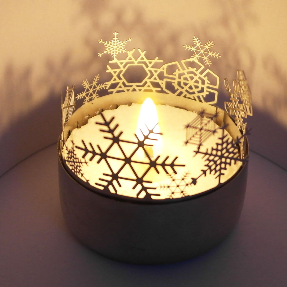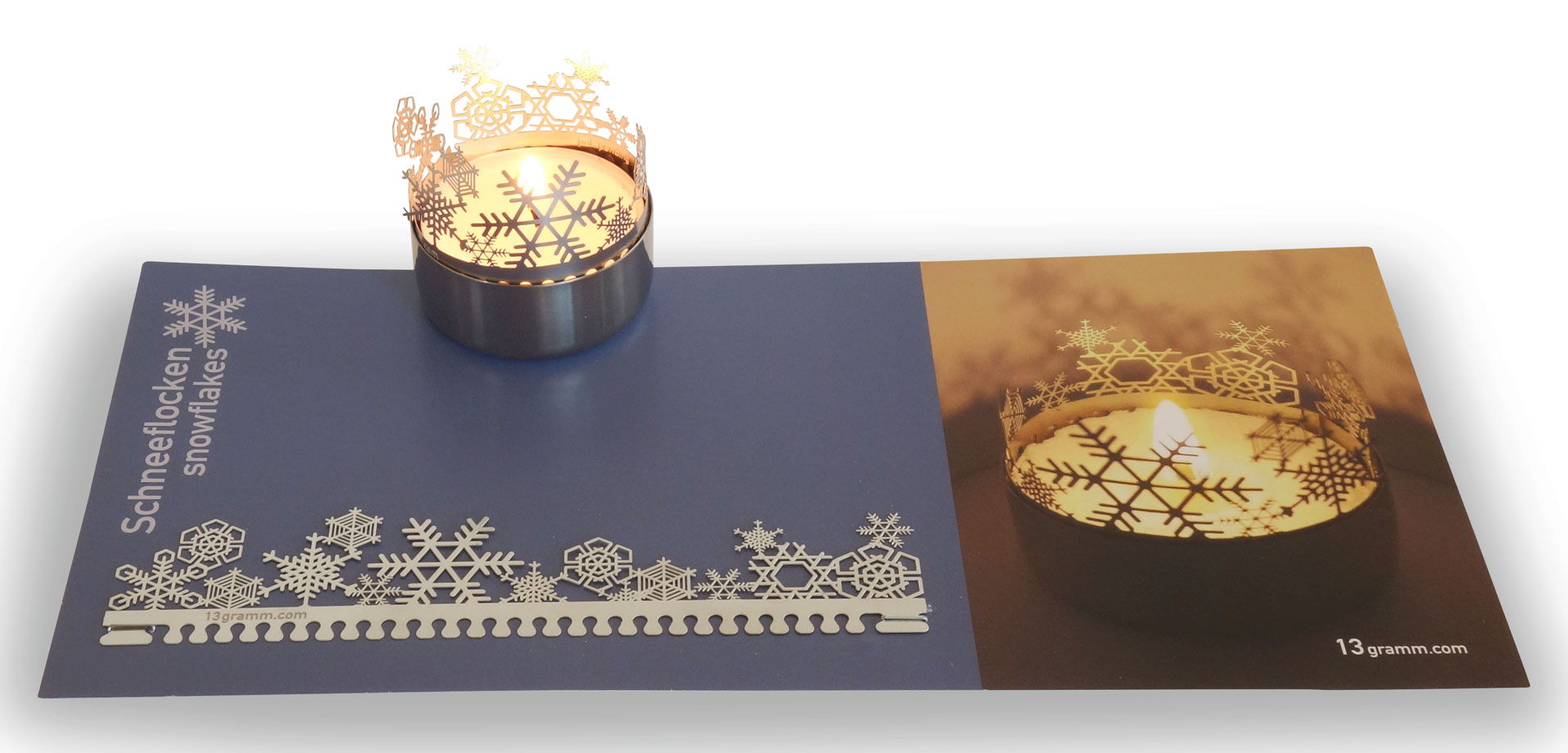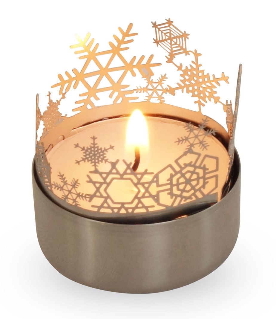 - Material: Edelstahl für die Wintersterne-Silhouette aus hochvergütetem Federstahl (passend für alle handelsüblichen Teelichter), Papier für die Schneesterne-Trägerkarte