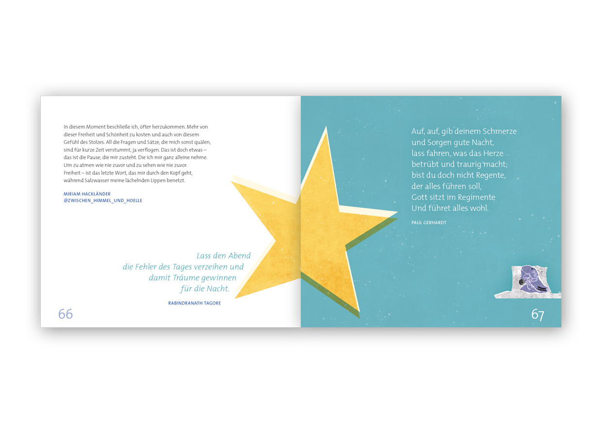 Tag und Nacht – der Grundrhythmus der Schöpfung. Von Beginn an. Und von Anfang an bestimmt dieser Rhythmus alles Leben. Die Nacht hat dabei immer etwas Faszinierendes. Es ist die Zeit der Träume. Davon erzählt bereits die Bibel in vielen Geschichten. Aber auch Dichter*innen, Denker*innen und Musik*innen aller Zeiten beschäftigten mit der besonderen Stimmung der Nacht. Das Buch vereint eine erlesene Auswahl von Geschichten, Gedanken und Gebeten aus Bibel, Literatur und christlicher Tradition für die Zeit, wenn die Stille der Nacht sich über den Lärm des Tages breitet. Ein zauberhaft illustriertes Geschenkbuch für echte Sternstunden.