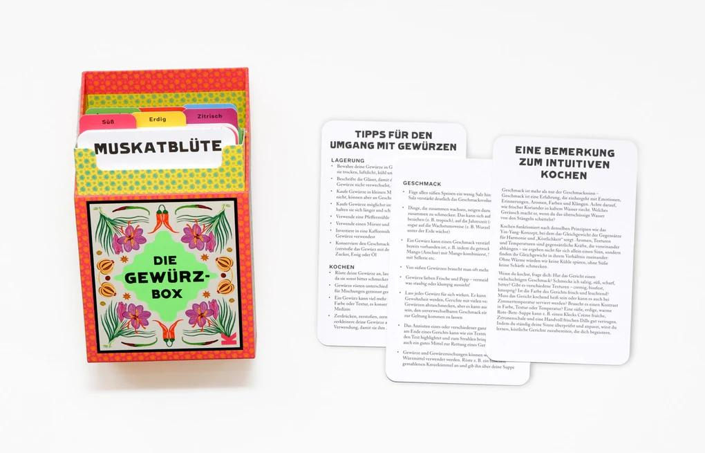 Von traditionell bis außergewöhnlich: In dieser farbenfrohen Box finden Sie 60 charmant illustrierte Karten mit Zutatenkombinationen, Kochtipps, originellen Rezeptideen und faszinierenden Fakten zu jedem Gewürz. Wählen Sie aus sechs Kategorien - aromatisch, zitrisch, erdig, süß, pikant und scharf - und kosten Sie ganz neue Geschmackswelten. Ein unverzichtbarer Küchenbegleiter!