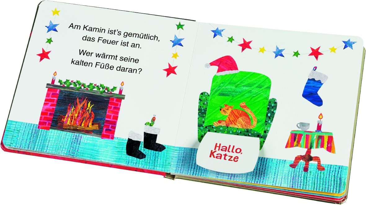 Am Weihnachtsabend, wenn es draußen still wird und der Mond die verschneite Landschaft beleuchtet, ist es drinnen warm und gemütlich. Katze, Hund und Maus genießen diese Stimmung und warten gespannt auf die Bescherung. Wie schön, dass der Weihnachtsmann für alle eine Überraschung bringt auch für die Leser! Auf jeder Seite gibt es hinter Klappen etwas zu entdecken und Geschichten zu erzählen.