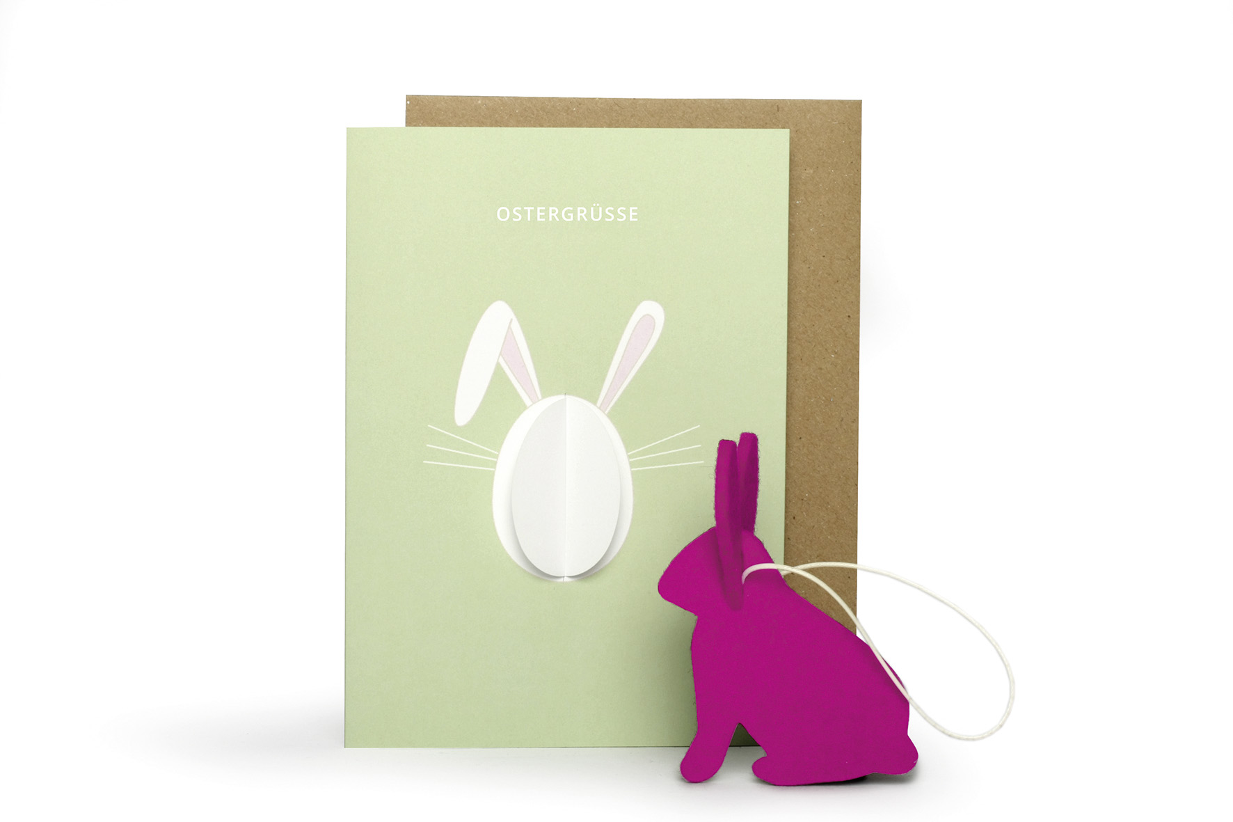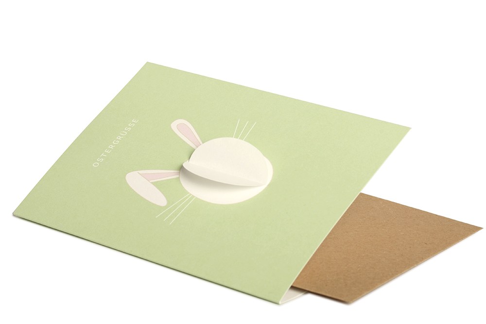 Die Karten werden auf hochwertigem Designpapier in Hamburg gedruckt und in einer Einrichtung von Menschen mit Behinderungen konfektioniert, Die Hasenanhänger werden in einem Familienbetrieb in Thüringen gefertigt.