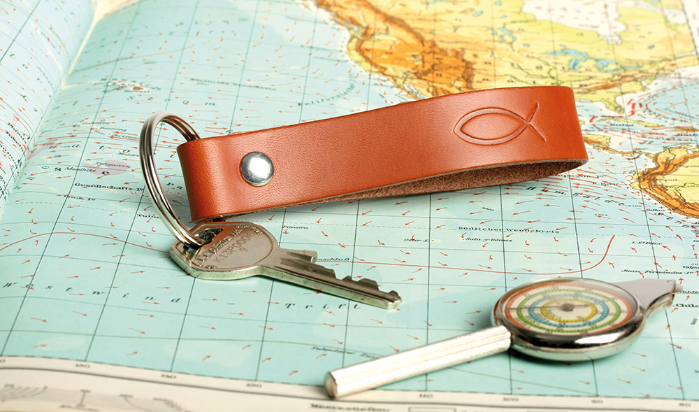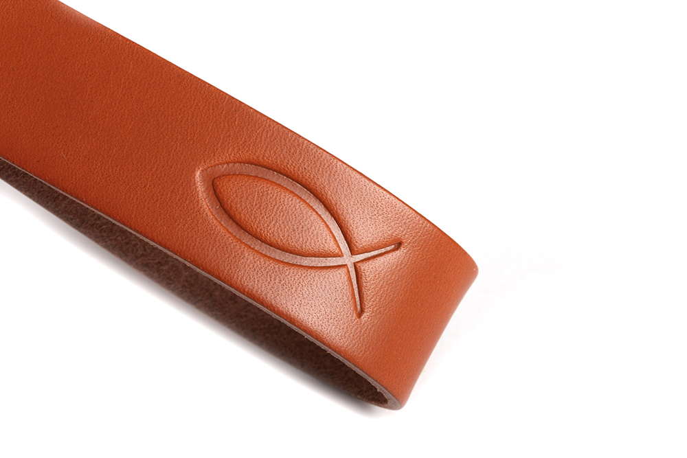 Hochwertig pflanzlich gegerbtes Leder trifft bei diesem Schlüsselband auf beste Verarbeitung. Das anfänglich noch feste Material wird mit jedem Tag etwas geschmeidiger. Unverwechselbar wird es durch das christliche Fisch-Symbol. Eine kleine Botschaft für den Alltag. Ein schönes Geschenk für Männer und Frauen gleichermaßen.