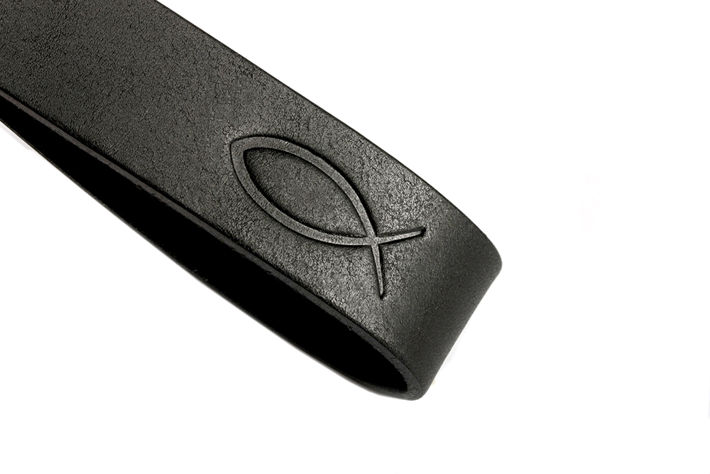 Lederschlüsselband mit Fisch „Ichthys“ Prägung - schwarz