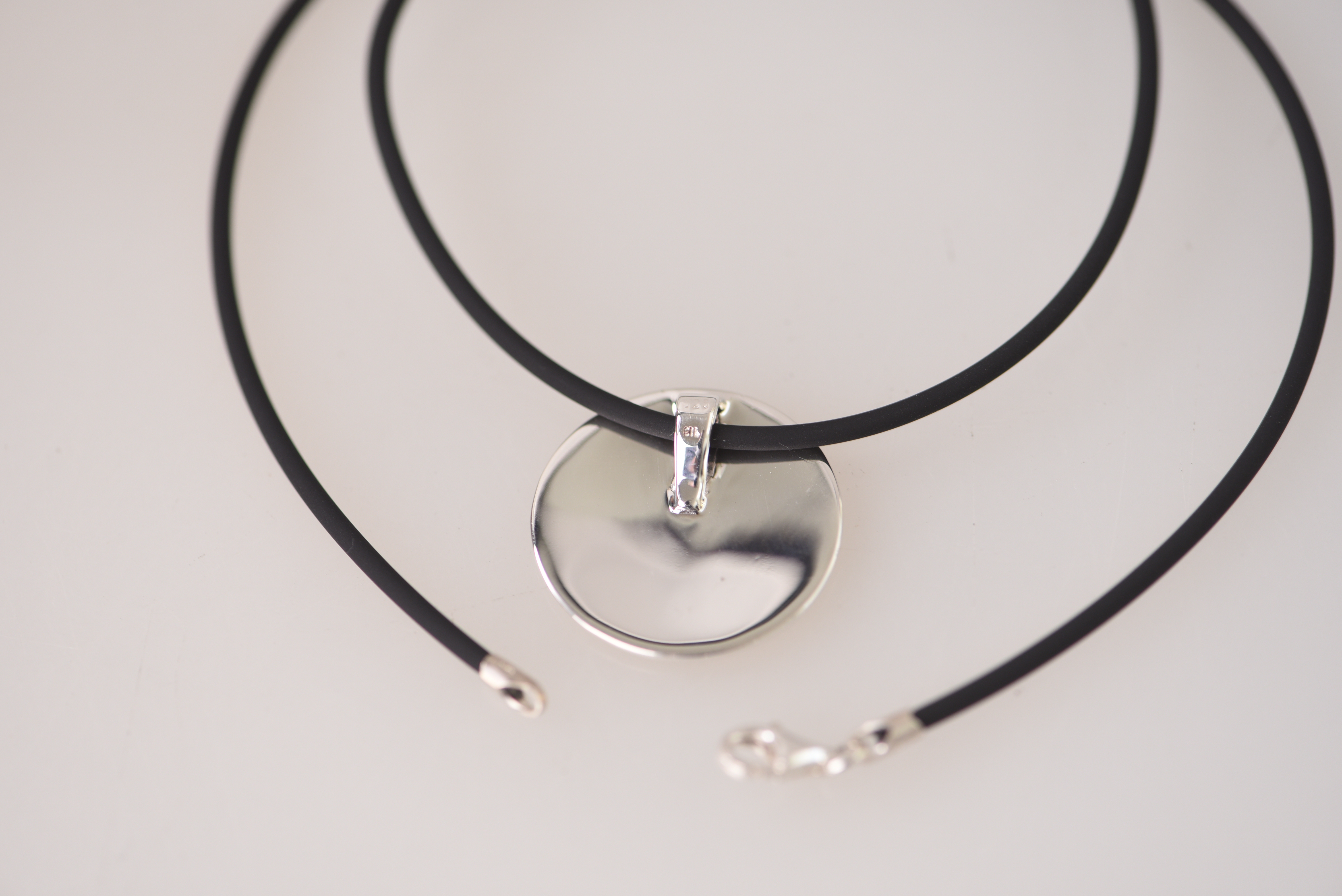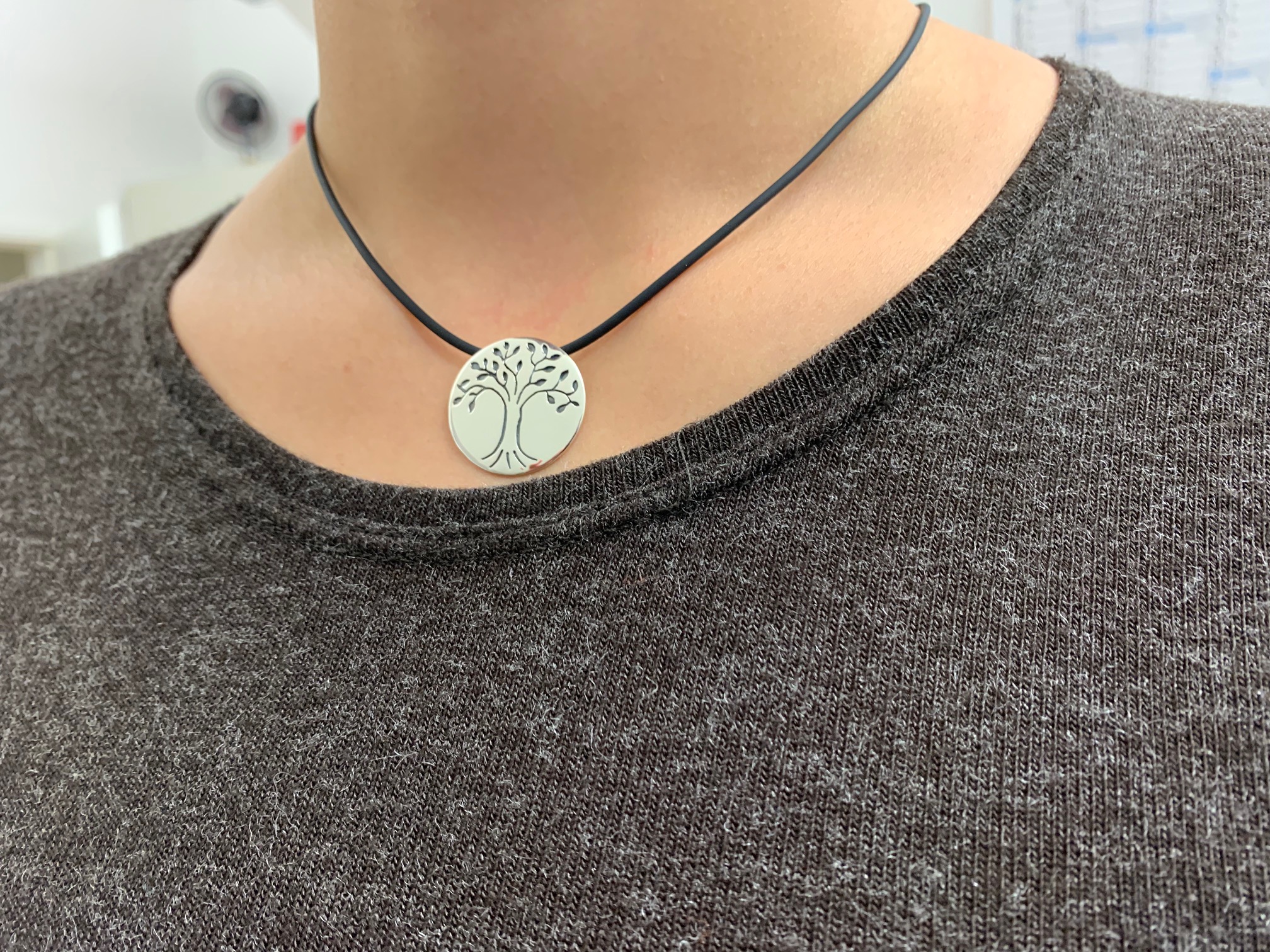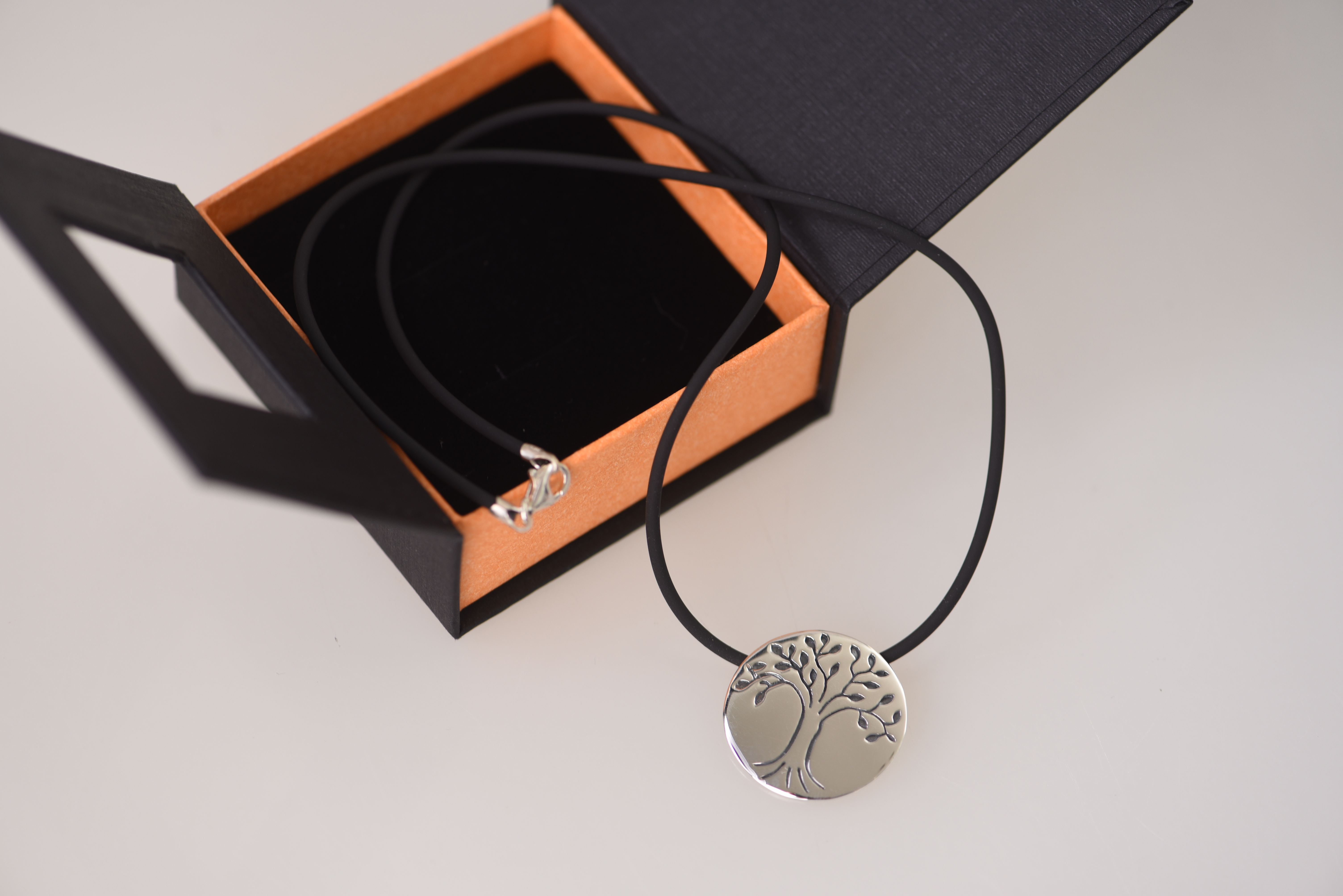 Ein zeitlos schöner Anhänger aus 925er Silber an einem Band aus Naturkautschuk mit dem Baum des Lebens als Motiv. Ein tolles Geschenk.