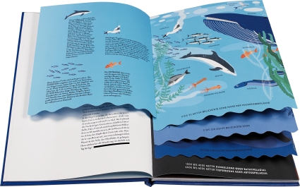 Wie entsteht eine Welle? Was ist ein Schwarzer Raucher? Wie groß werden Riesenkalmare? Welche Meeresbewohner leben im Korallenriff? Wieso wird der Ozean »Lunge unseres Planeten« genannt? Dieses reich bebilderte Sachbuch beantwortet all diese Fragen und zeigt uns das grenzenlose blaue Meer, wie wir es noch nie gesehen haben. Die großen und kleinen Klappen und die filigranen Scherenschnitte verleihen diesem Buch eine einzigartige Ästhetik, die uns immer tiefer in die Welt der Meere führt bis hinunter in die geheimnisvolle Tiefsee.