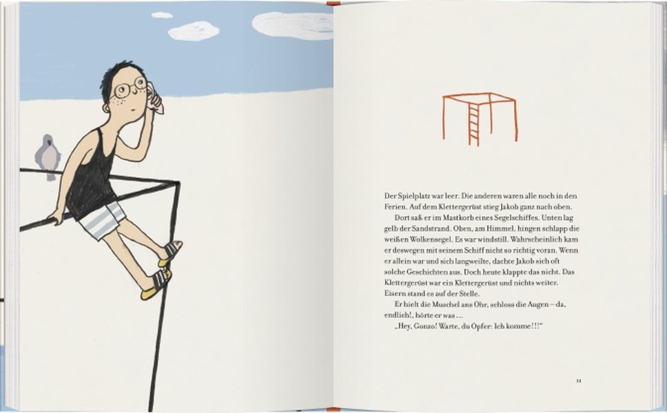 Jakob hört das Meer rauschen, wenn er seine Muschel ans Ohr hält. Und wenn er die Augen schließt, kann er es sogar sehen. Als er mit der Muschel auf dem Klettergerüst zwischen den Hochhäusern sitzt, taucht ausgerechnet Jonas auf. Jonas mit den teuren Sportschuhen und den coolen Sprüchen, der ihn immer ärgert. Prompt schnappt er sich Jakobs Muschel. Nach einem Blick nach unten klammert Jonas sich allerdings erst mal mit beiden Händen am Gerüst fest. Jakob schließt die Augen und plötzlich kann er ihn sehen - Jonny, den Freibeuter, den Schrecken der Meere. Mit der Warze auf der Nase sieht er Jonas ziemlich ähnlich. Doch das Piratenschiff gerät in einen Sturm und geht unter. Leider können nicht alle Seeräuber schwimmen... Und wie ist das mit Jonas?