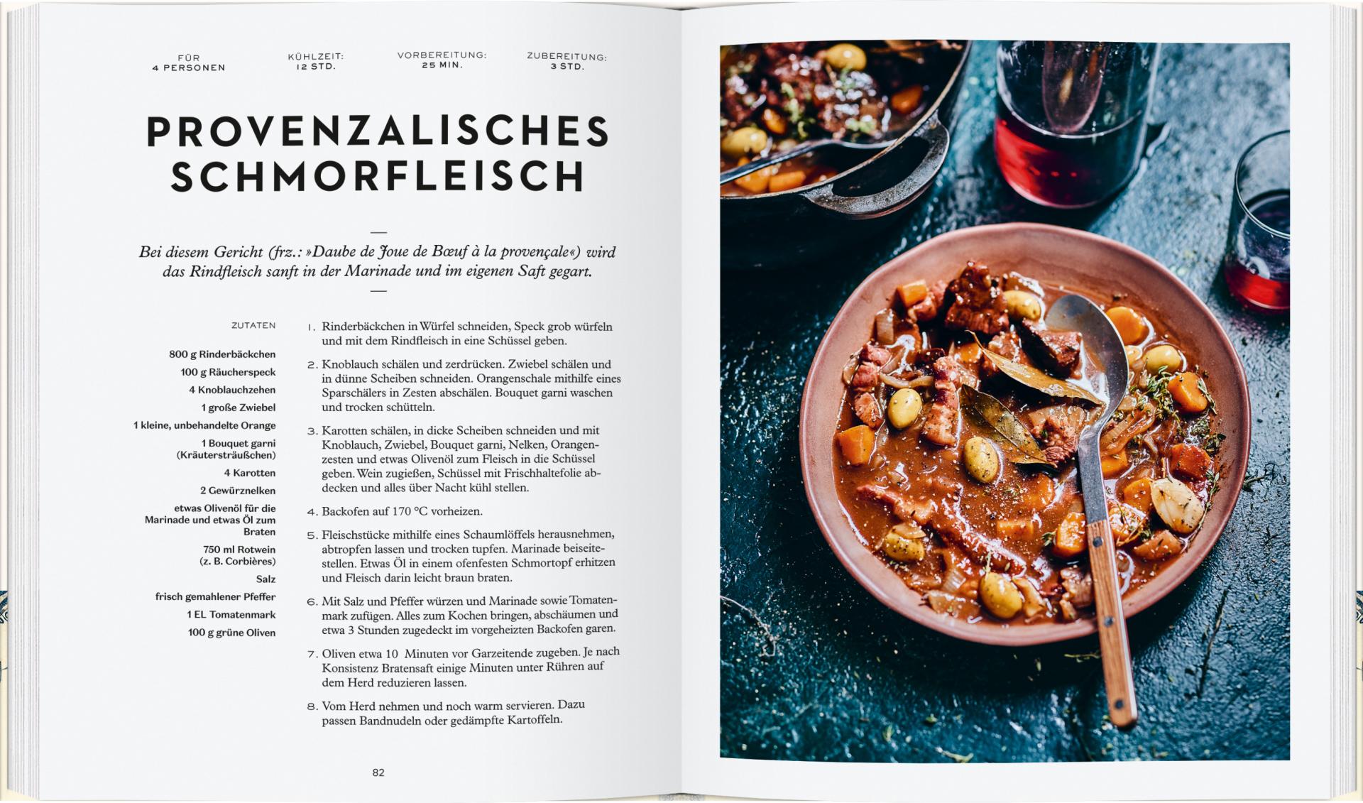 Gutes Essen gehört zur französischen Lebensart, in Frankreich werden aus besten Produkten köstliche Gerichte gezaubert. In diesem Buch sind alle Klassiker versammelt, die das Herz des Gourmets begehrt: von Boeuf Bourguignon über Entrecôte mit Sauce Béarnaise, Muscheln in Weißwein, Käsesoufflé und Ratatouille bis hin zu Crêpes Suzette, Mousse au Chocolat und Zitronentarte.