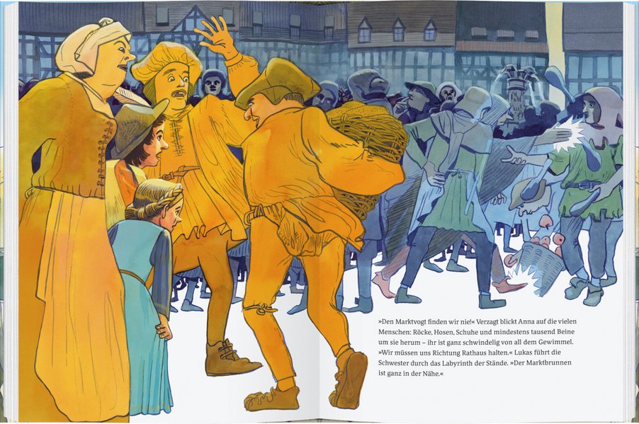 Heute ist Michaelistag! Der Marktplatz in der Stadt ist voller Menschen. Mittendrin: Anna und ihr Bruder Lukas. Ihr Vater, Schneidermeister Lautensack, hat sie geschickt, um auf schnellstem Wege neuen Samt von Tuchhändler Brandis zu holen. Doch das bunte Treiben auf dem großen Markt ist viel zu spannend. Was gibt es nicht alles zu sehen! Vor allem dem Feuerschlucker müssen die Kinder unbedingt zuschauen. Und so bemerken sie gar nicht, dass ihnen ein Beutelschneider auf den Fersen ist ...