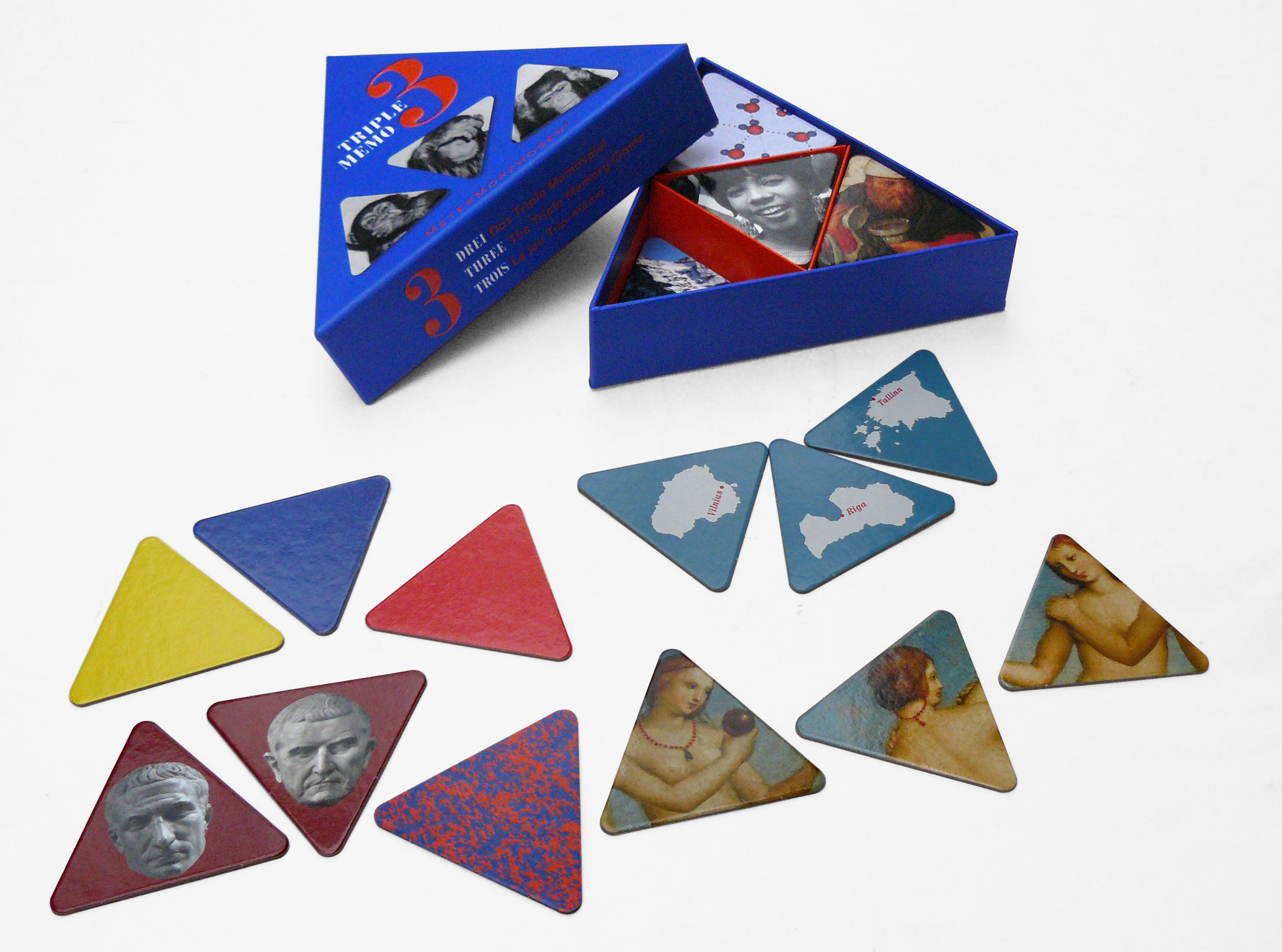 Ein Memospiel mit 24 Tripeln, in dem sich Heiliges und Profanes, Geist und Populärkultur aufs Schönste treffen: Die drei Weisen aus dem Morgenland mit den Drei Schweinchen, The Supremes mit den drei Grazien.