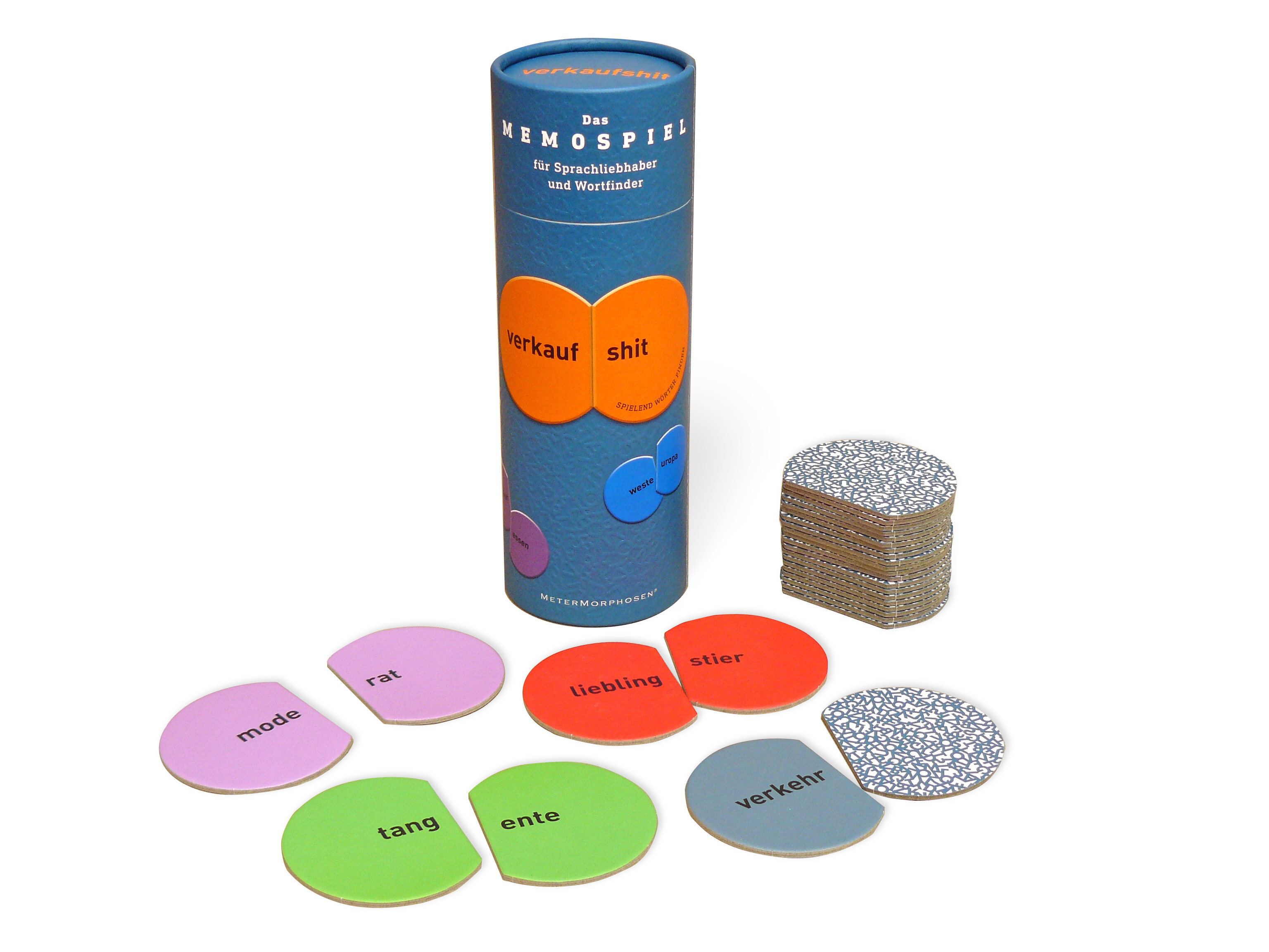 Beim neuen Memospiel für Sprachfreunde VERKAUFSHIT bilden etwa Bär und Tiger ein Paar und ergeben zusammengeführt BÄRTIGER. Tang und Ente werden zur TANGENTE, die Substantive Mode und Rat werden zusammengezogen zum Adjektiv... weiterlesen