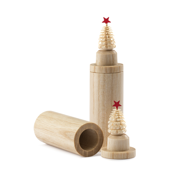 Klein, aber oho! Den beliebten Miniatur-Weihnachtsbaum gibt es jetzt mit rotem Stern! Der winzige Weihnachtsbaum aus Eschenholz ist handgedrechselt und passt in die Hosentasche.