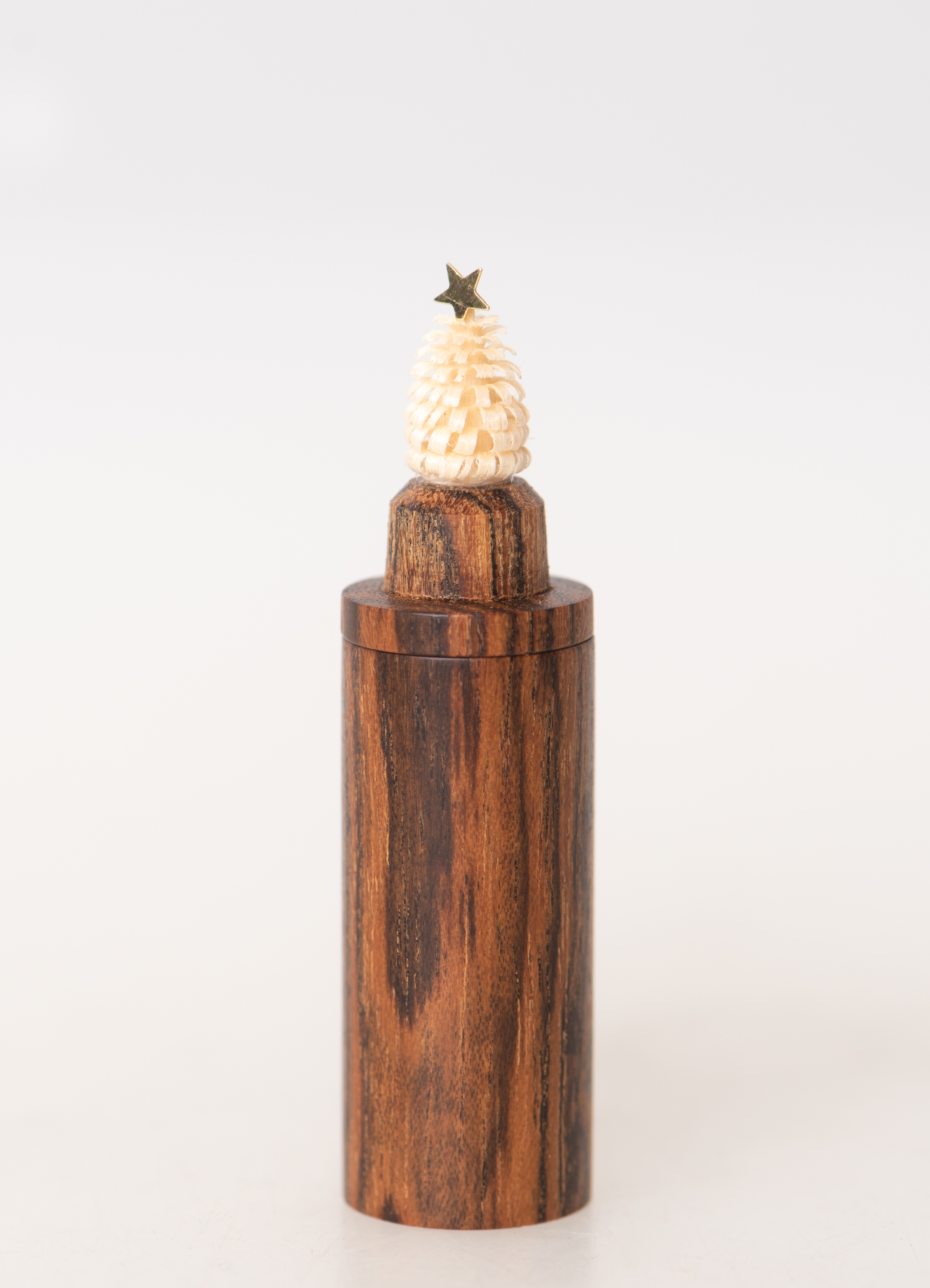 Geschützt in der dazugehörigen Dose aus dem Edelholz Bocote kann er überall mit hingenommen oder bereits in der Vorweihnachtszeit verschenkt werden: als kleine Aufmerksamkeit zum Adventskaffee, beim ersten Treffen auf dem Weihnachtsmarkt, als Überraschung im Adventskalender oder für weihnachtliche Stimmung auf dem Schreibtisch.