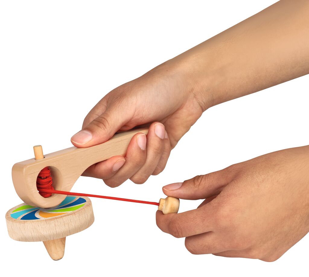 - mit Schnur und Haltegriff zum einfachen Abrollen des Kreisels