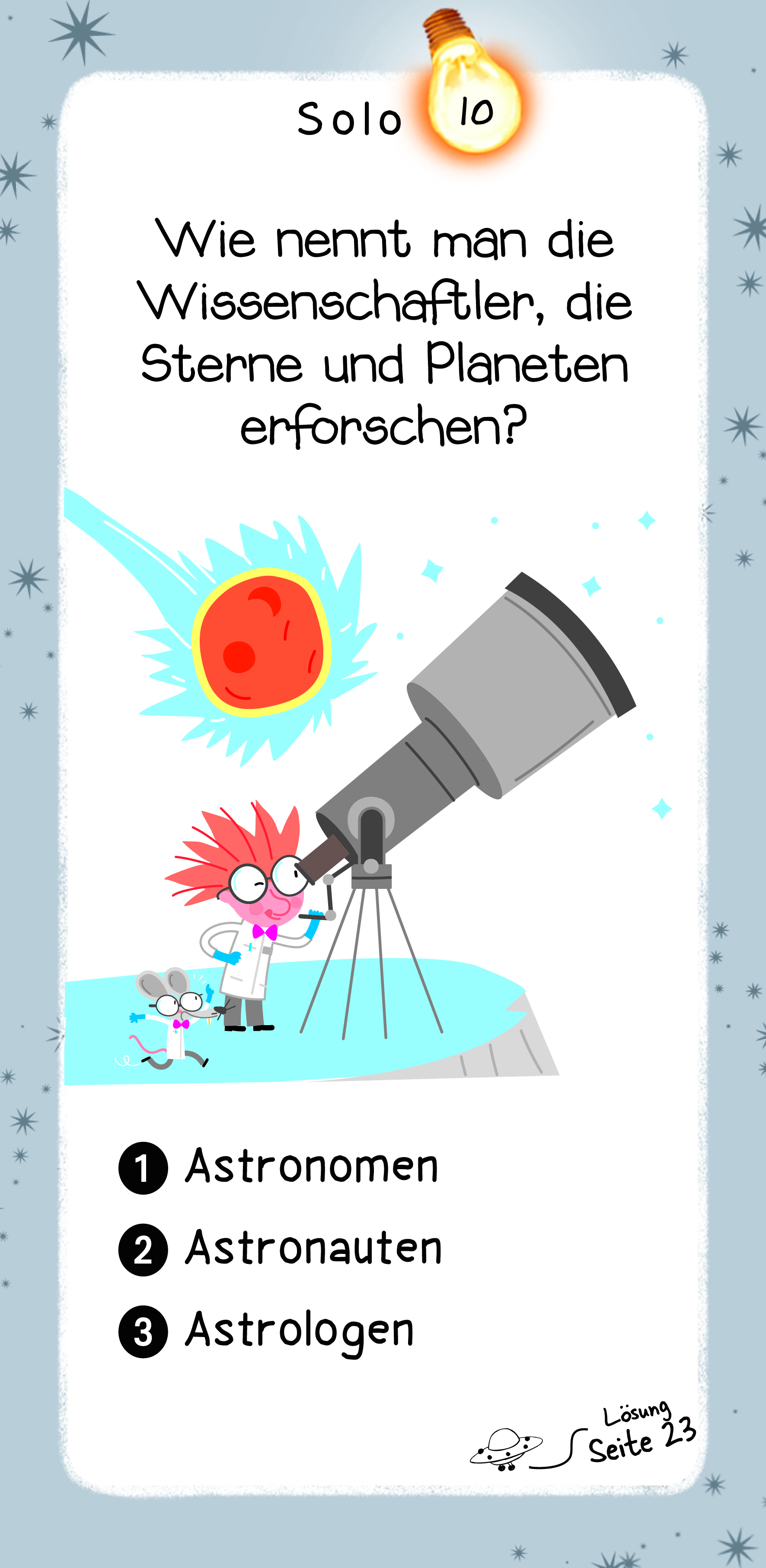 Gibt es auf allen Planeten Tag und Nacht? Warum sind die Mammuts ausgestorben? Und was ist ein Kumulonimbus? Ein Quiz-Spiel für schlaue Füchse und neugierige Forscher! Mit 100 Schlaumeier-Fragen zu den Themen: Das Weltall, Die Erde, Das Klima, Abenteuer Leben, Der menschliche Körper, Große Erfindungen, Rätsel des Alltags.