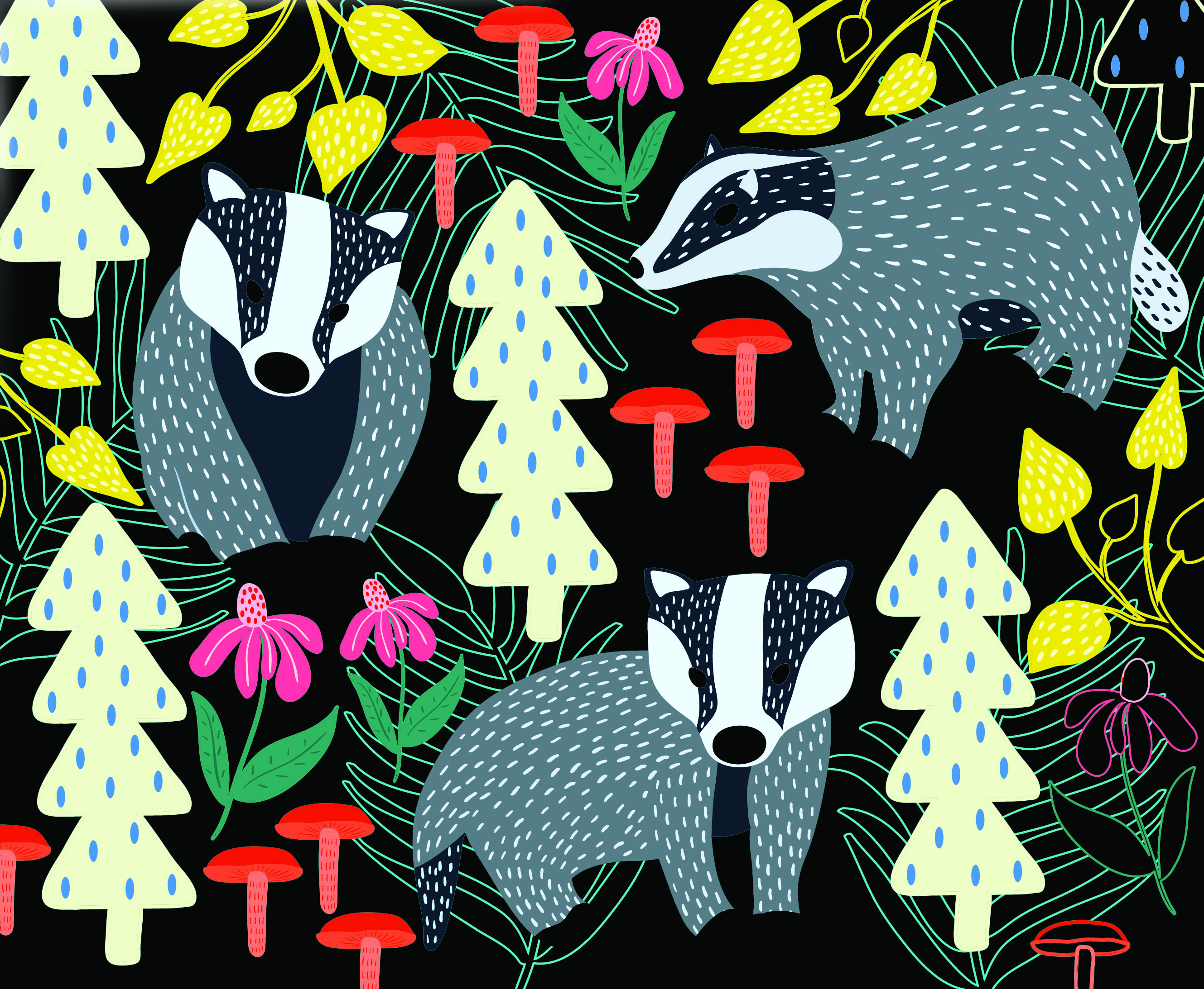 Im Zauberwald verstecken sich die verschiedensten Tiere – sobald man die mattschwarze Oberfläche der Karten abkratzt erscheinen sie wie von Zauberhand. Dort hinter dem Baum lauert ein Fuchs und auf einer bunten Blumenwiese können Dachse beobachtet werden. Was für ein farbenreiches Schauspiel!