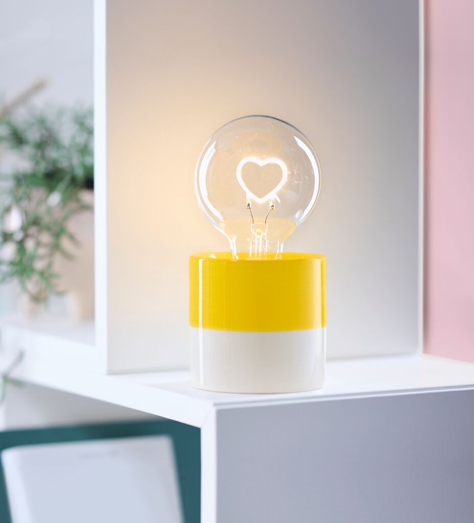 Verbreitet gute Laune in den eigenen vier Wänden: Die Smile LED-Dekoleuchte schafft eine Atmosphäre purer Wohlfühlstimmung! In ihrem Inneren, der transparenten Glas-Glühbirne, strahlt ein LED-Licht in Herzform. Diese einzigartige Kombination macht diese Lampe zu einem wahren Blickfang in jedem Zuhause und garantiert das Versprühen von positiver Energie.