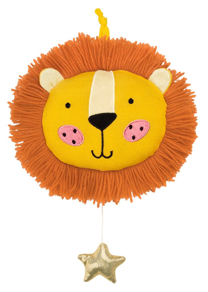 Zieht man an dem funkelnden Sternchen ertönt die Melodie La Le Lu, aus dem niedlichen Löwenkopf.