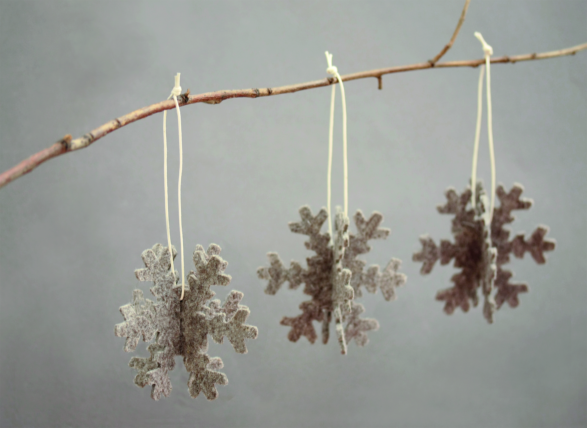 Klassisch und reizvoll dekorieren die Schneeflocken aus Wollfilz Tannenzweig, Baum und Adventskranz und verbreiten mit ihrer dreidimensionalen Wirkung eine weihnachtliche Vorfreude.