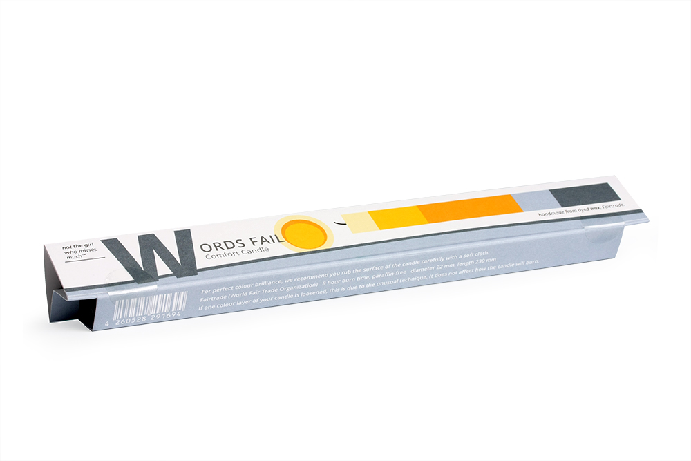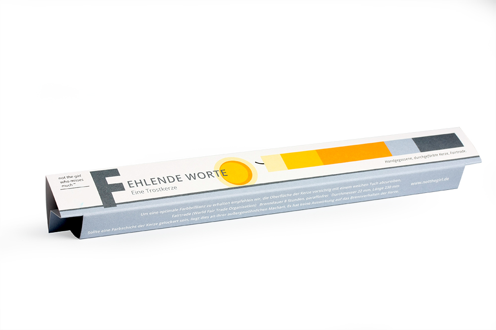 Ein Geschenk, Glückwunsch oder ein Gruß – jedes Thema findet bei uns seine passende Kerze, einzeln in einer farbigen Kartonage verpackt. Die Kerze besteht aus durchgefärbtem Wachs – aufwendig wird bei ihrer Fertigung Farbschicht für Farbschicht von Hand gegossen. Die Verpackungen werden in Hamburg klimaneutral auf FSC zertifiziertem, offenen Designpapier gedruckt und weiterverarbeitet.