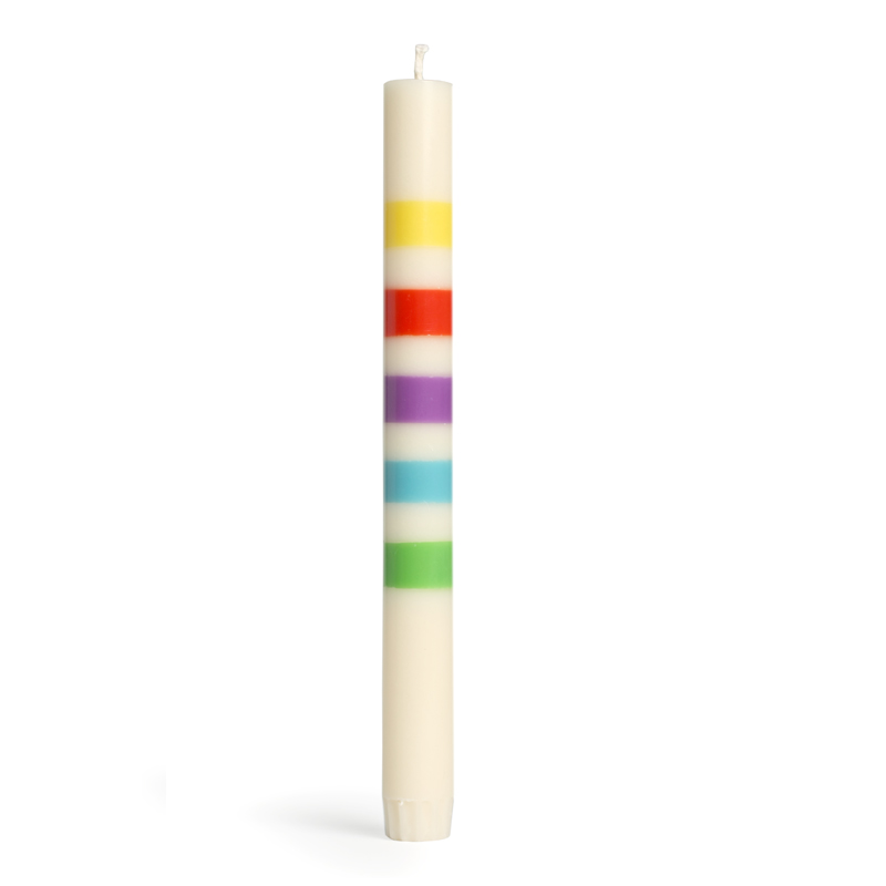 Mit 6 unterschiedlichen, farbigen Ringeln macht diese Kerze ihrem Namen alle Ehre: Happy Birthday - eine Glückwunschkerze. Fröhlich und leicht wie sein Anlass wird die einzelverpackte Kerze zum passenden Geschenk für jedes Alter und Geschlecht. Die Kerze wird aus durchgefärbtem Wachs gefertigt. Die Verpackung wird klimaneuteral in Hamburg gedruckt. Wir freuen uns, dass diese Kerzen in einem Fairtradeprojekt in Indonesien explizit Frauen vor Ort zu einer größeren Selbständigkeit verhilft.