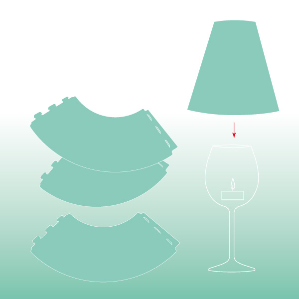 3 Schirmchen verwandeln schlichte Weingläser in kleine Stehleuchten. Die Schirme zusammenstecken je auf ein Glas mit brennendem Teelicht setzen. Fertig ist eins von drei Stehleuchten!