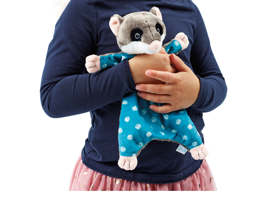 Der feine Schmusestoff ist weich und anschmiegsam, die abstehenden Öhrchen und Pfoten können kleine Hände gut greifen und festhalten. Selbstverständlich nach höchsten Sicherheitsstandards hergestellt und waschbar bei 30 °C . Ein treuer Begleiter für viele glückliche Kuschelstunden.