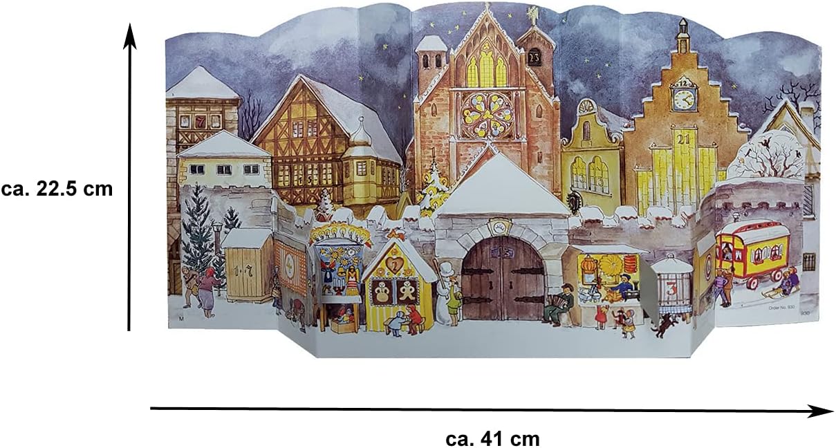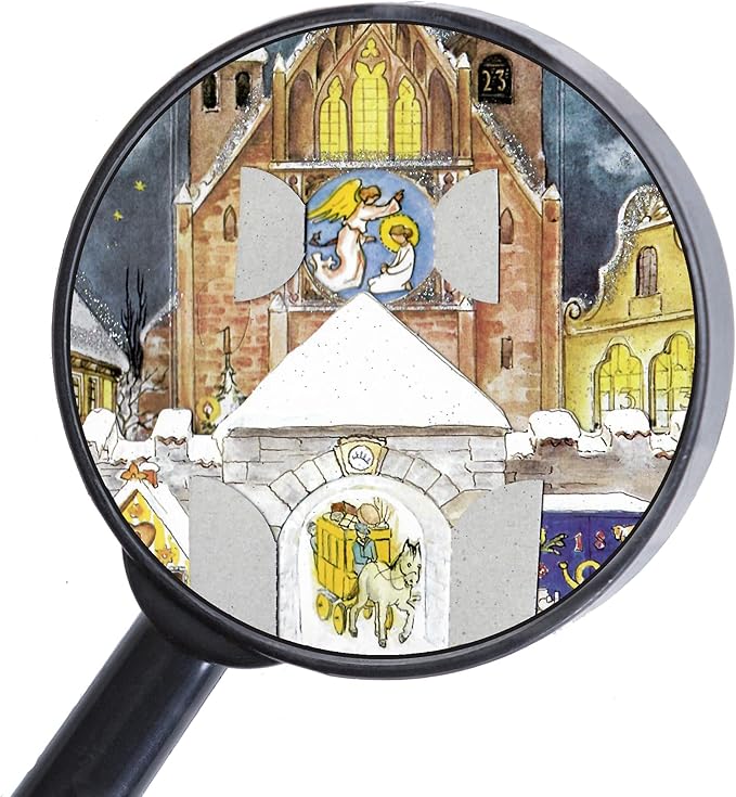 Bei diesem hochwertigen 3D-Panorama-Adventskalender können Sie auf zwei Ebenen Türchen öffnen: Vorne in der eingesteckten Kulisse und hinten in der sehr detailgetreu gezeichneten Altstadtszene. Ein atmosphärisch schöner historischer Nachdruck von 1947, verziert mit Silber-Glitzer.