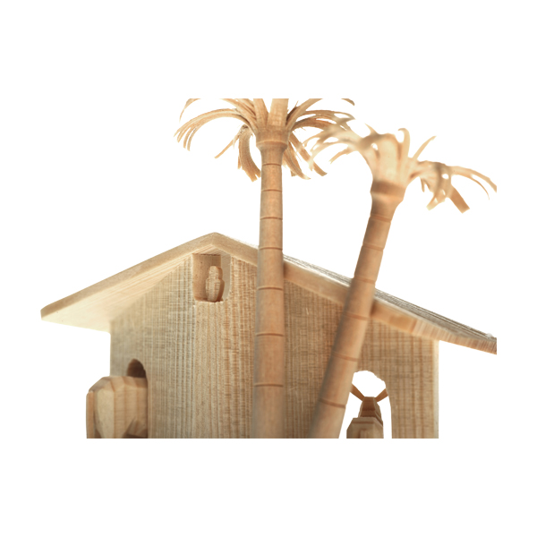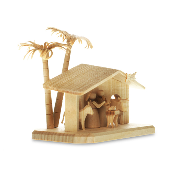 Natürlich aus der Werkstatt von Uwe Uhlig: eine handgedrechselte Weihnachtskrippe aus hellem Lindenholz mit Maria, Josef und dem neugeborenen Jesuskind. Hinter dem Stall stehen zwei Palmen, Ochs und Esel sind auch dabei, und auch der Weihnachtsstern darf nicht fehlen. Filigran, mit vielen liebevollen Details, aber trotzdem stabil. Für Sammler der kleinen Kostbarkeiten von Uwe Uhlig. Und für Menschen mit wenig Platz, die dennoch die traditionelle Krippe an Weihnachten aufstellen wollen. Auch ein schönes Geschenk für junge Menschen für die erste eigene Wohnung.